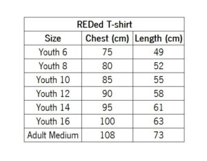 All ages, Dancer MerchandiseBlack, round-neck unisex t-shirt with REDed logo. Optional item for REDed students to purchase and wear to regular rehearsals. Please refer to the size guide image before placing your order. The price includes the cost of posting the item to your home (items will be dispatched from March 16 on). Please enter your preferred postal address into the Billing Details fields upon checkout.$40.00Bundle discount: purchase a REDed T-shirt and Tote Bag together and use coupon code RED10 at checkout to receive a $10 discount!